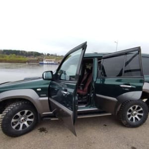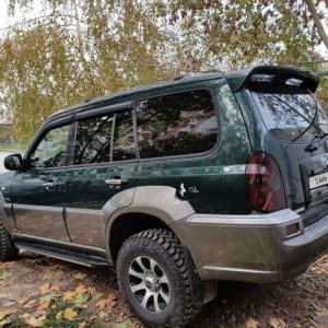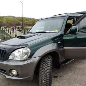 Два комплекта колёс на дисках. Зима (сейчас машина на ней) резине три сезона Хенкук Пайк 245*70*16 на оригинальных литых дисках профессионально окрашенных в чёрный цвет. Лето новые, один сезон грязевые шины Хенкук Динапро МТ 245*75*16, по асфальту тоже очень даже не плохи и не шумны. По бездорожью, не о чем говорить, их стихия. Вообще преимущество Терракана в проходимости, плавности хода, шумоизоляции и конечно же вместительности. Да и дорогу все уступают, что тоже о чём-то говорит!) Багажник и салон просто огромны. Со сложенными сиденьями вмещается двуспальный надувной матрац(есть на фото). С семьёй на природе спали втроём в полный рост. Фото вообще очень много конкретно этого авто.