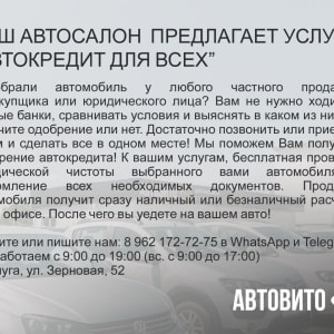ОБРАЩАЕМ ВНИМАНИЕ! Если не подобрали авто у нас, а выбрали у любого другого продавца, в том числе физлица, вы также можете оформить автокредит в Автовито. Высокая степень одобрения от 12 банков. Расчёт с продавцом на месте.