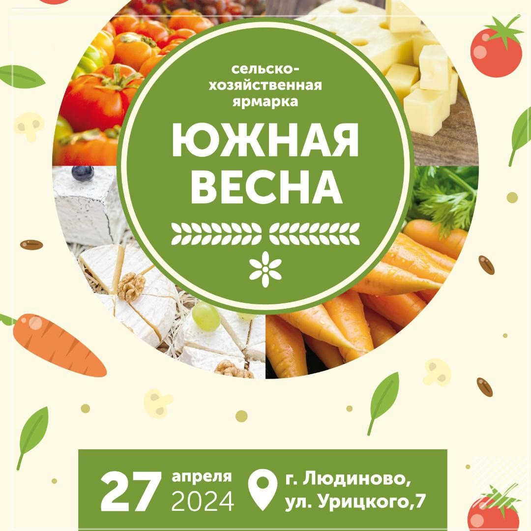 В Людинове пройдёт сельхозярмарка «Южная весна». Свою продукцию на территории Центрального городского рынка предложат товаропроизводители Калужской области и других регионов.