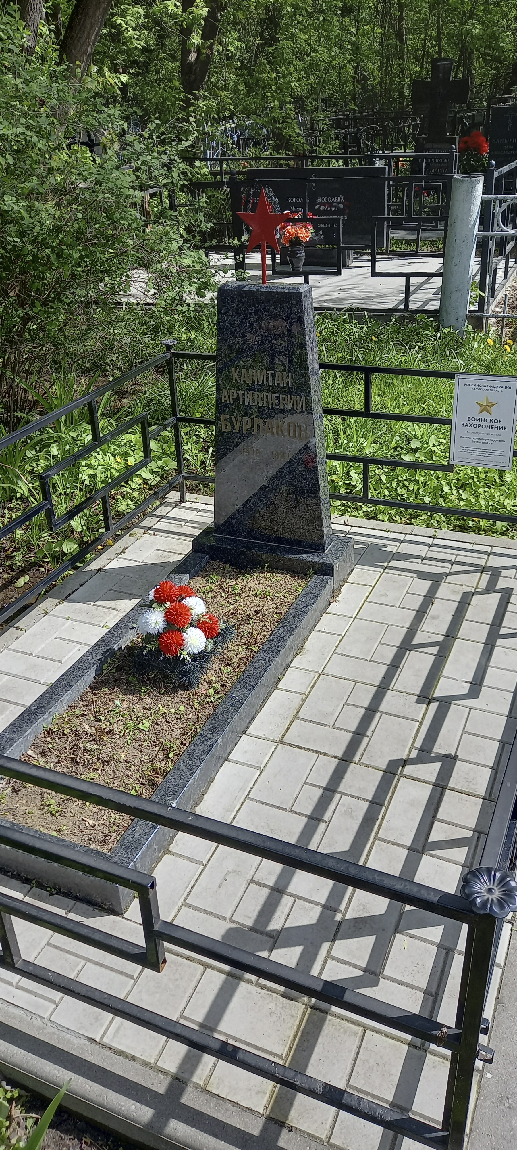 Сотрудники Управления Минюста России по Калужской области убрали мусор, сухую траву, покрасили оградки на захоронениях - капитана артиллерии Бурлакова, младшего лейтенанта Рыжова Владимира Петровича и на братской могиле Калужан, расстрелянных нацистами в 1941 во время оккупации города.