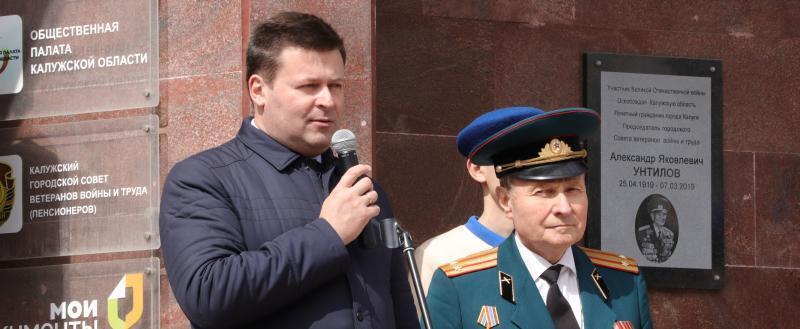 Память фронтовика почтили на торжественном митинге, калужане возложили цветы к мемориальной доске в честь Александра Унтилова.