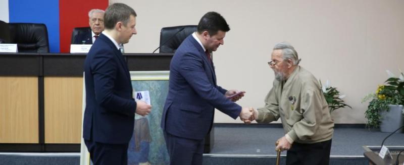 Глава городского самоуправления поблагодарил за помощь и активную работу членов городского совета ветеранов. Заслуженный деятель искусств РФ Владислав Собинков был награждён медалью «80 лет со дня освобождения Калуги».