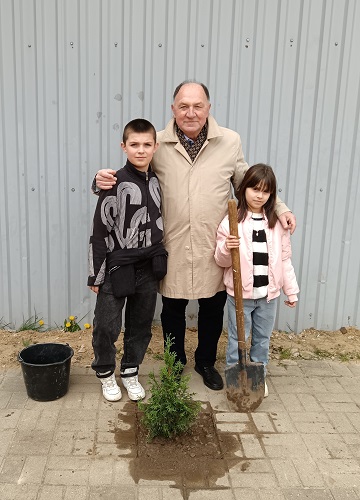Юрий Зельников поучаствовал в данном замечательном мероприятии вместе с внуком и внучкой – учениками школы. Так что за саженцами будет кому присмотреть.
