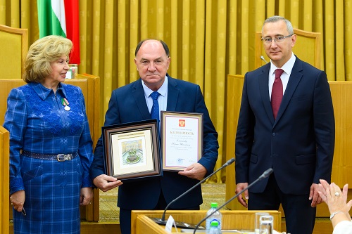 Губернатор Калужской области Владислав Шапша вручил Уполномоченному по правам человека в РФ Татьяне Москальковой медаль «За особые заслуги перед Калужской областью» II степени .