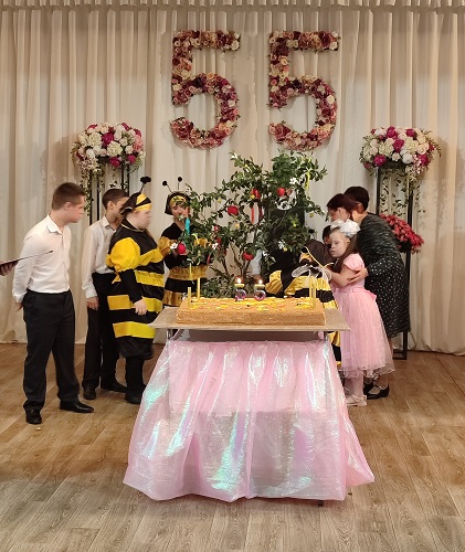 Сегодня этому славному учреждению исполняется 55 лет. В стенах детского дома его директор Наталья Буланова, коллектив и воспитанники принимали поздравления и слова благодарности от министра труда и социальной защиты Калужской области Павла Коновалова, главы администрации Дзержинского района Егора Виркова, Уполномоченного по правам человека в Калужской области Юрия Зельникова, представителя Аппарата Уполномоченного по правам ребенка в Калужской области Руслана Петрухина, коллег-руководителей домов-интернатов социального обслуживания Калужской области, волонтеров и благотворителей.