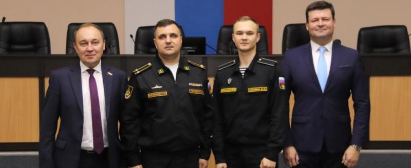 Глава городского самоуправления поблагодарил родителей за воспитание настоящего патриота, вручил им подарки и благодарственное письмо, пожелал морякам-подводникам успешной службы.