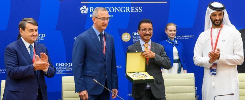 Церемония подписания прошла в присутствии почетных гостей: помощника Президента Российской Федерации Игоря Левитина, сенатора Российской Федерации, председателя комитета Совета Федерации по бюджету и финансовым рынкам Анатолия Артамонова, Министра экономики Объединенных Арабских Эмиратов господина Абдуллы бин Тук Аль-Марри.