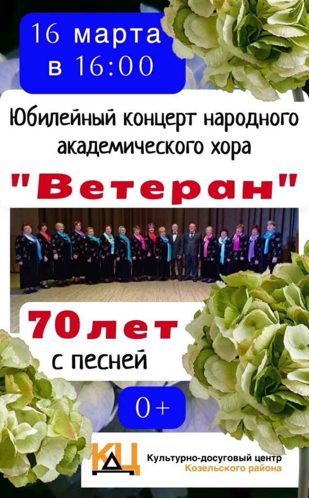 В четверг, 16 марта, в 16.00. Козельский хор приглашает всех ценителей песенного искусства, всех своих друзей на юбилейный концерт в районный КДЦ (бывший РДК). Приходите, наслаждайтесь, общайтесь, приобщайтесь!
