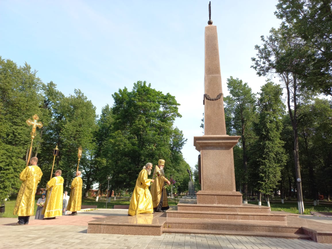 К подножию Поклонного Креста, Вечного огня и памятной стеле «Людиново – город воинской доблести» священнослужители и прихожане возложили гирлянду и цветы, как дань памяти всем погибшим в годы войны.