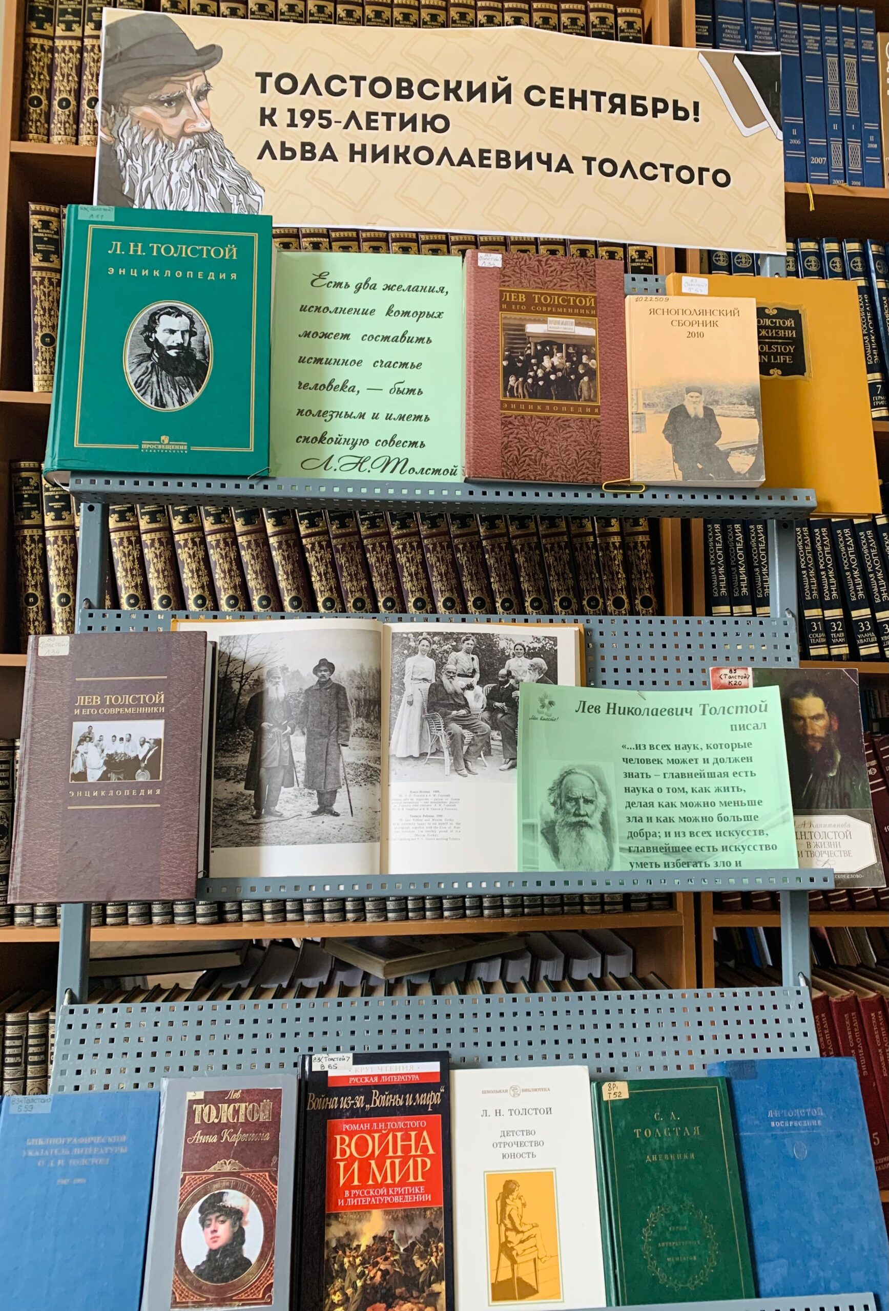 Выставка «Толстовский сентябрь: 195-летие со дня рождения русского писателя Льва Николаевича Толстого»