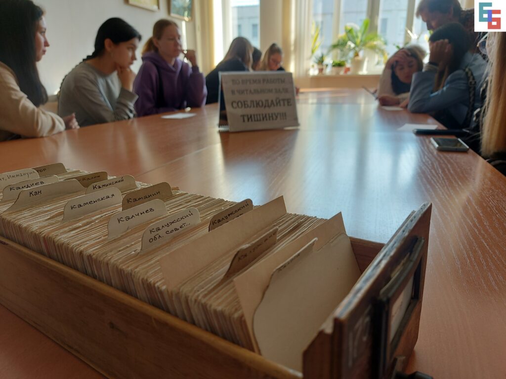 20 сентября 2023 г. сотрудником Информационно-библиографического центра «Белинки» О.П. Коваленко проведен библиотечный урок по справочно-поисковому аппарату библиотеки (СПА) для учащихся Калужского колледжа экономики и технологии (ККЭТ, спец. Документационное обеспечение управления и архивоведение). В процессе занятия присутствующие ознакомлены с системой каталогов и картотек, особенностями классификации (ББК) литературы и навыками поиска необходимых источников. Проведены практические занятия по доступным, в т. ч. удаленным электронным полнотекстовым базам.