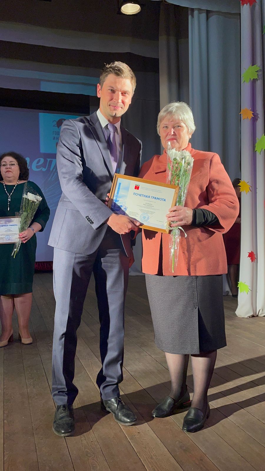 На торжественном мероприятии педагогов чествовали, благодарили за их благородный труд, вручали заслуженные награды: Благодарности Губернатора Калужской области, Благодарности районной организации профсоюза работников образования и отдела образования города Людиново. Для них звучали музыкальные подарки и трогательные поздравления.