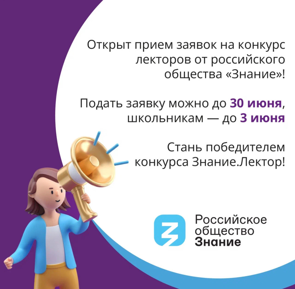 Российское общество «Знание» приглашает активную молодежь и взрослых Калужской области поучаствовать в отборе в проект «Знание.Лектор».