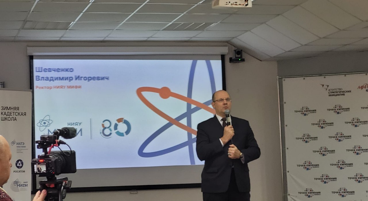 На торжественном открытии первой Всероссийской Зимней кадетской школы на базе ИАТЭ НИЯУ МИФИ о славных страницах истории института кратко напомнил кадетам ректор НИЯУ МИФИ Владимир ШЕВЧЕНКО.