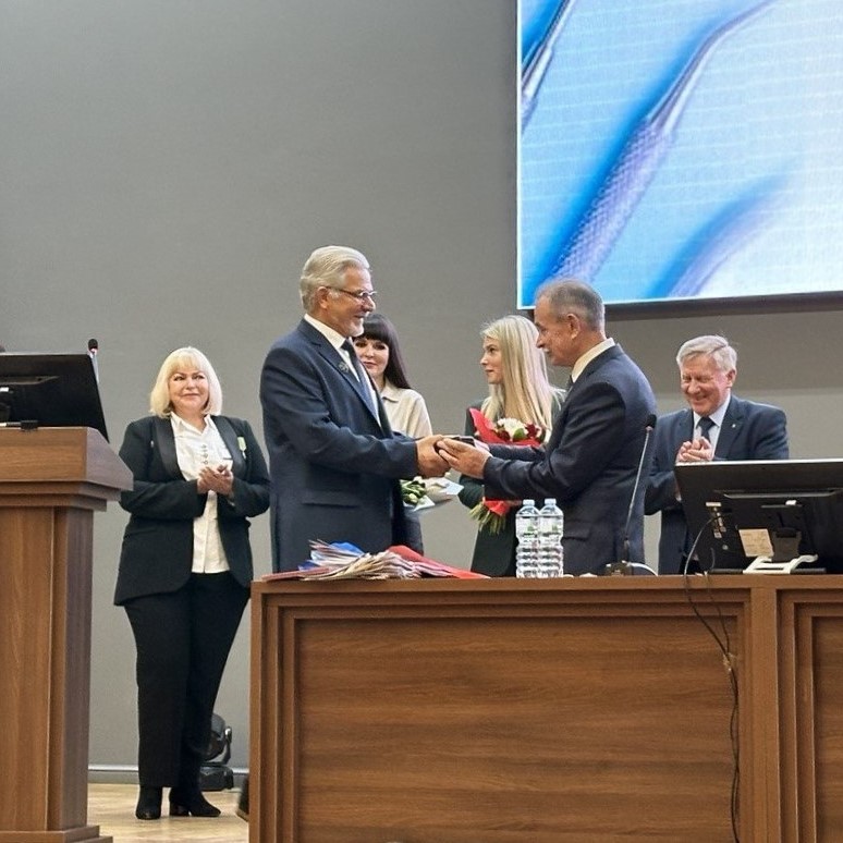 Делегация сотрудников стоматологических поликлиник Калуги, в том числе и.о. главного врача ГАУЗ КО КОДСП Кадушникова Ж.А., заместитель главного врача по лечебной работе ООО «Стоматолог-2» Абрамин С.Н. и главный врач ГАУЗ КО КОКСП Цуканов В.С. посетили торжественные мероприятия, посвященные юбилею, и поздравили преподавателей и студентов факультета.