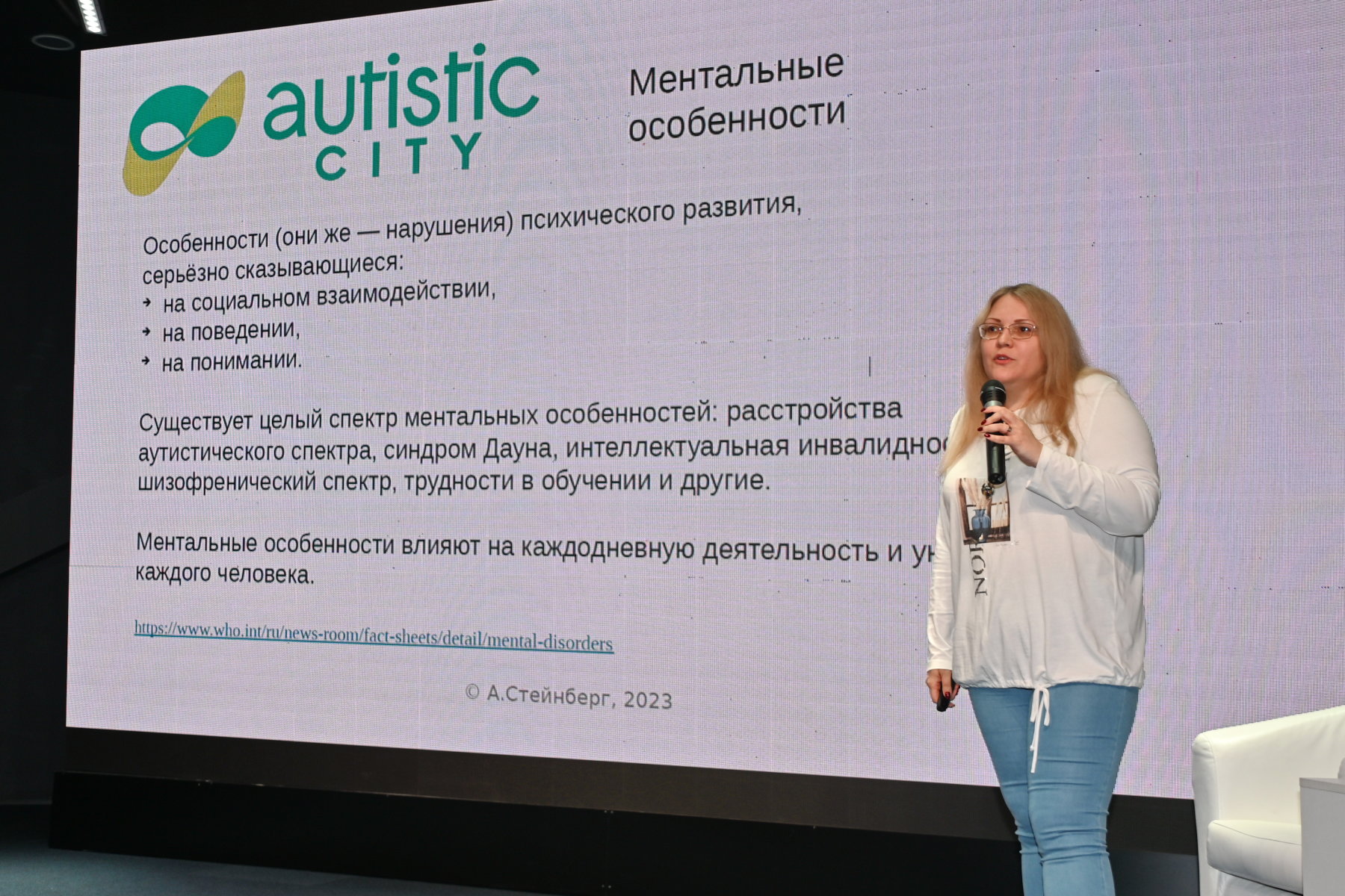 На встрече Алена Карбасова рассказала волонтёрам об особенностях восприятия окружающей среды нейроотличными людьми и специфике их поведения. Ребята узнали, как выстраивать эффективную вербальную и невербальную коммуникацию с такими посетителями и о том, как должен вести себя волонтёр при перегрузках людей с особенностями ментального развития.
