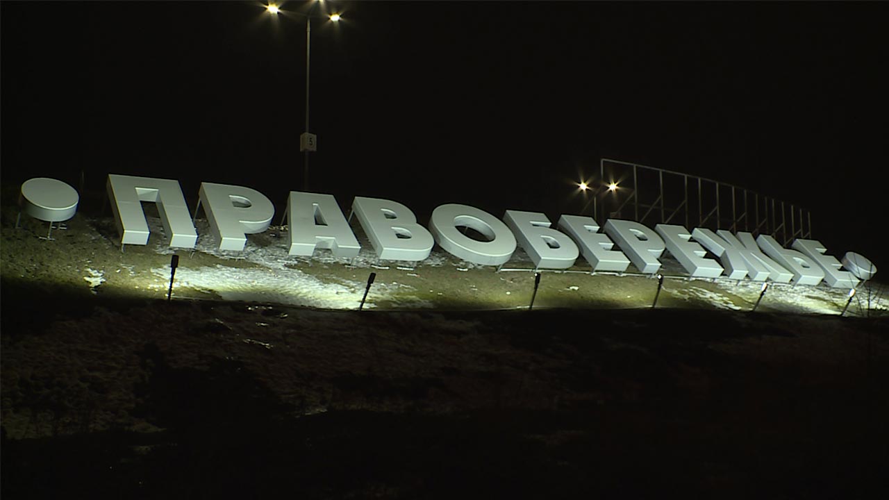 Круглую дату — 40 лет со дня основания микрорайона — правобережцы отметили в прошлом году. День рождения прошел, а подарки продолжаются. Недавно на насыпном склоне при повороте на улицу Генерала Попова появилась гигантская шрифтовая надпись "Правобережье".