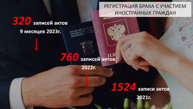 Особое внимание уделяется бракам с иностранцами. Налажено взаимодействие с правоохранительными органами. В 2021 году доля таких браков составляла 22% в общем количестве актов о браке, в 2022 году – уже 11%, а за 9 месяцев текущего года – 6,6%.