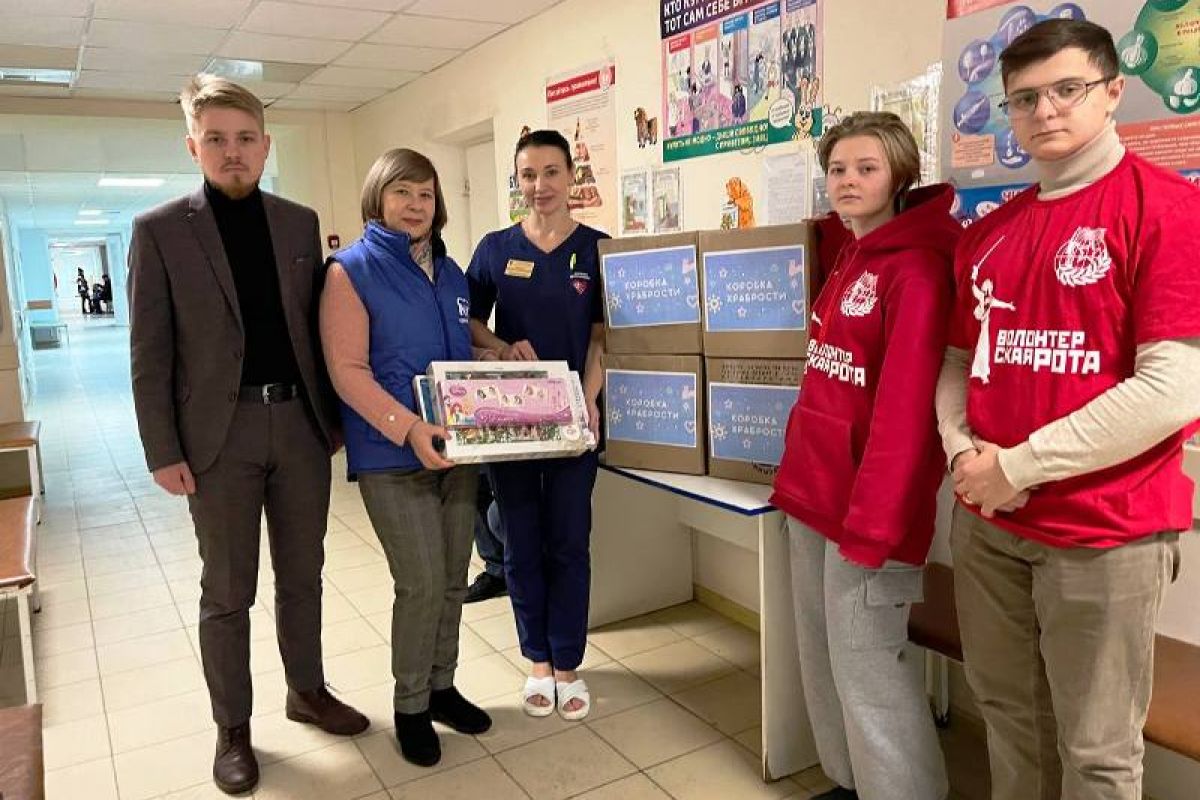 Сопредседатель Регионального совета сторонников Партии «Единая Россия» Калужской области Ольга Сидорова и руководитель Волонтерской Роты Боевого Братства Алексей Клименко передали в Калужскую областную клиническую детскую больницу «Коробки храбрости» с подарками, собранными в Людиновском, Малоярославецком и Хвастовичском районах. Вместе с презентами детям передали пожелания быстрейшего выздоровления, силы и храбрости во время медицинских процедур.