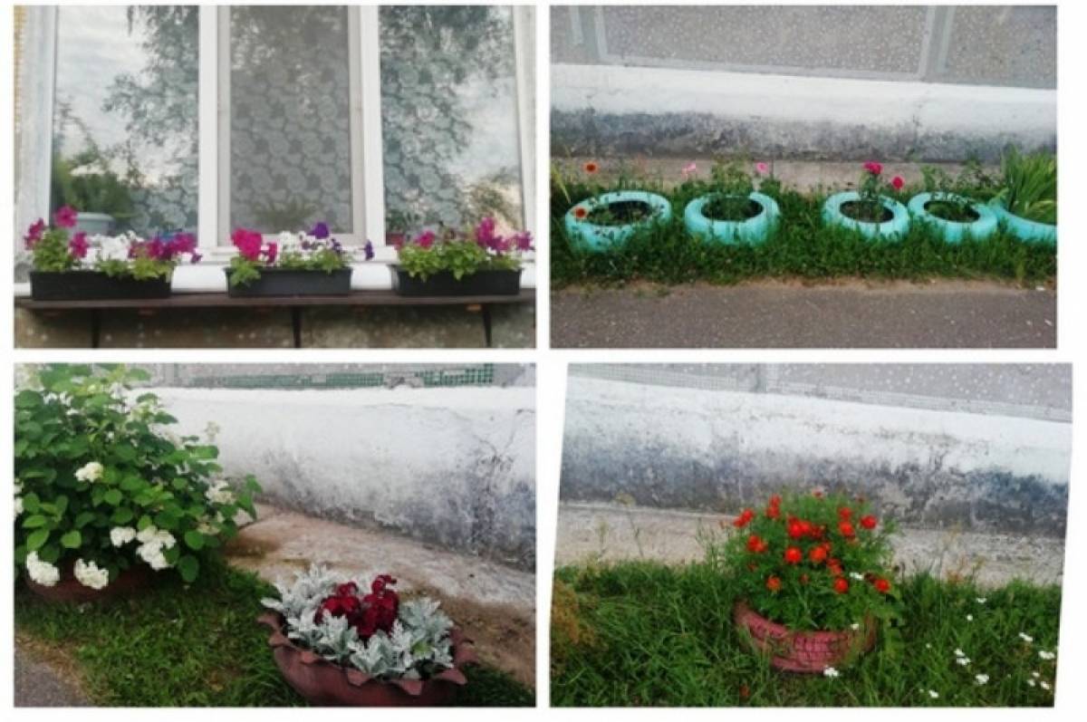 «С наступлением весеннего периода мы как «пчелки» начинаем трудиться на благо нашего двора. Своими руками мы сделали мини-клумбы из подручных материалов, покрасили их, и с наступлением хороших погодных условий мы сажаем цветы, как однолетние сорта - петуньи, колеусы, цинерарию, циннии, бархатцы, гладиолусы, так и многолетние - лилии, ирисы, гортензия, розы», - рассказывают активисты дома.
