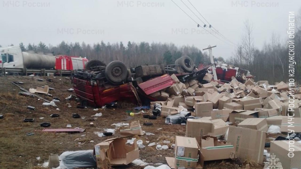 После аварии содержимое фуры разлетелось вдоль трассы на несколько сот метров.