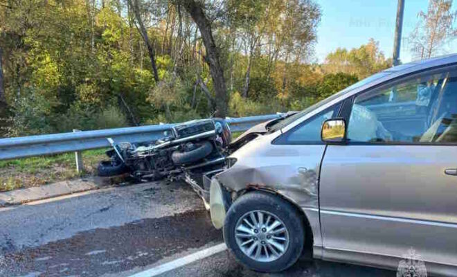На трассе в Малоярославецком районе столкнулись мотоцикл и микроавтобус
