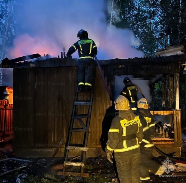 Тут, около 21:30 загорелась баня. На съемке видно, что постройка выгорела почти полностью. По информации ведомства на пожаре никто не пострадал.
