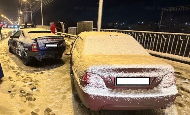В Калуге на путепроводе столкнулись две легковушки