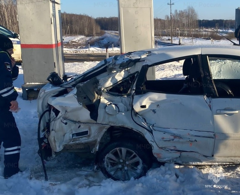 В Калужской области автомобиль попал под поезд на железнодорожном переезде