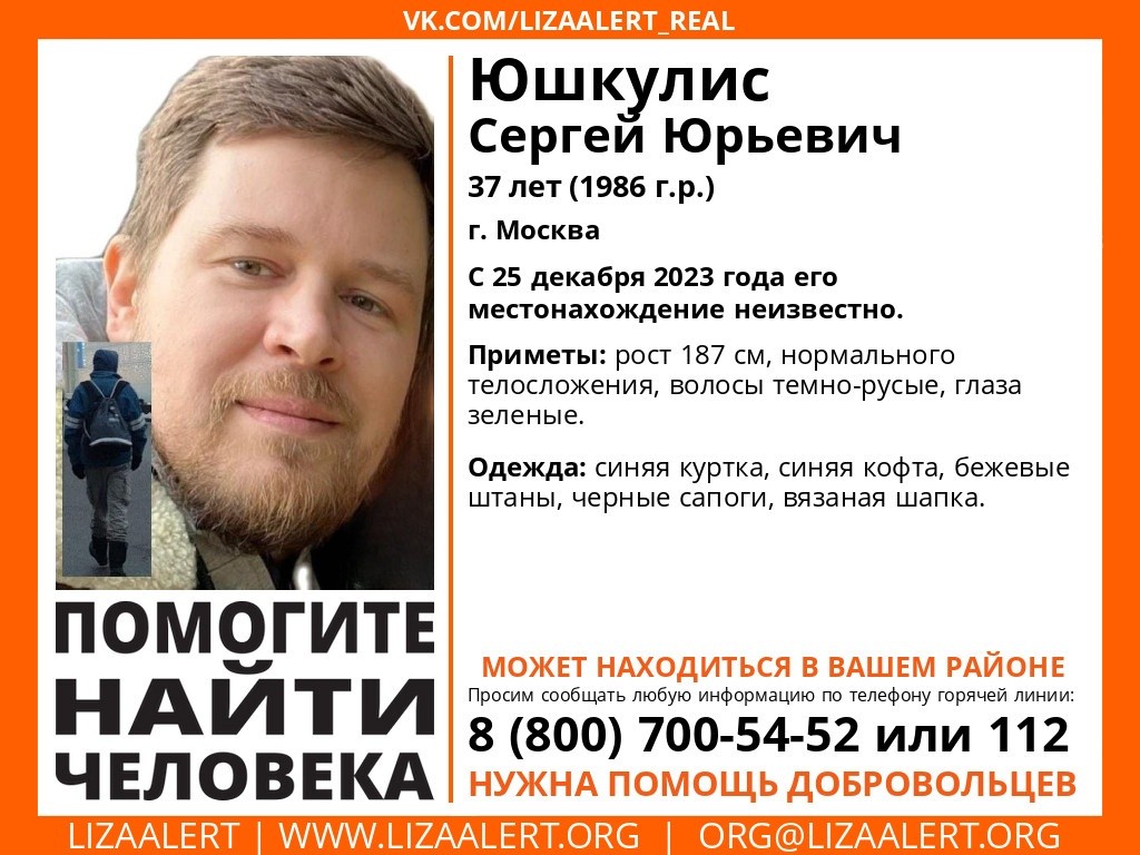 Пропал Юшкулис Сергей Юрьевич