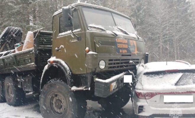 В Калужской области на трассе столкнулись два грузовика и легковушка