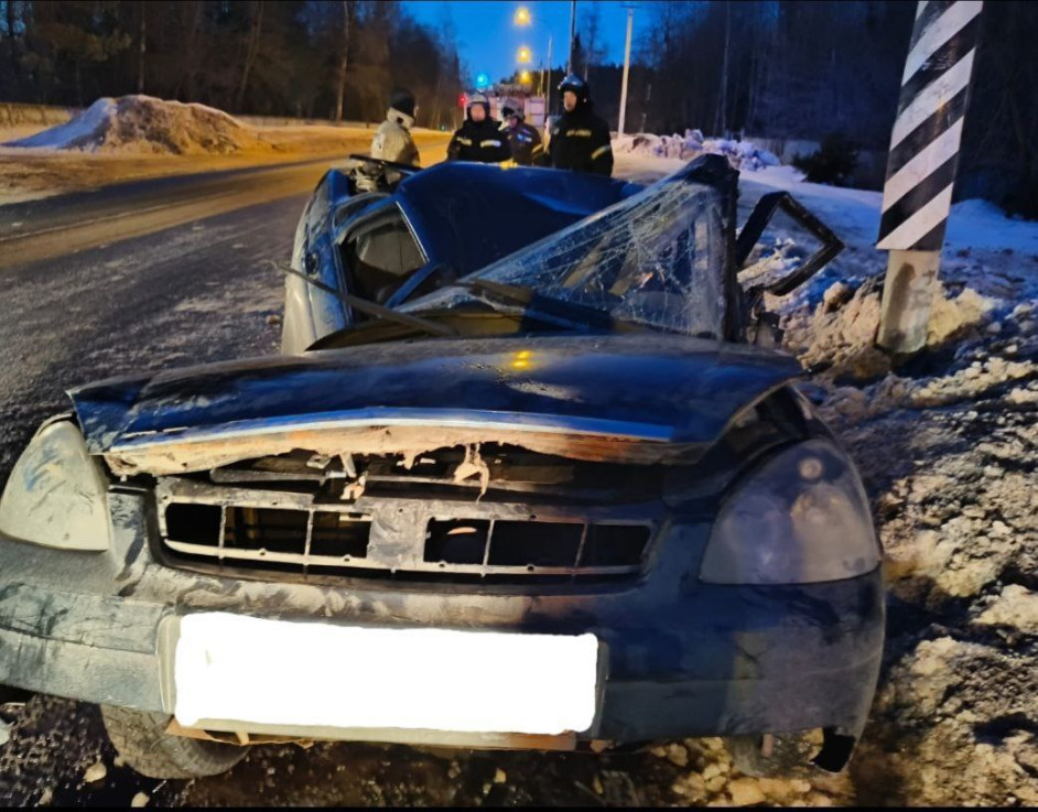 В Калужской области водитель Lada Prora врезался в опору ЛЭП и погиб