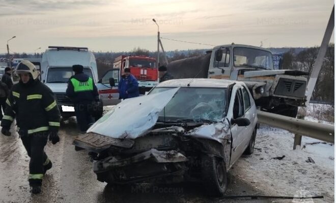 В Козельском районе жестко столкнулись грузовик и легковушка