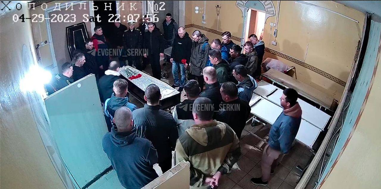 Поздно вечером 29 апреля (обратите внимание на записи с камер наблюдения - время 22:09) в морг, по всей видимости, пришли сослуживцы погибшего. Мужчины устроили гражданскую панихиду, а затем произошло что-то непонятное.