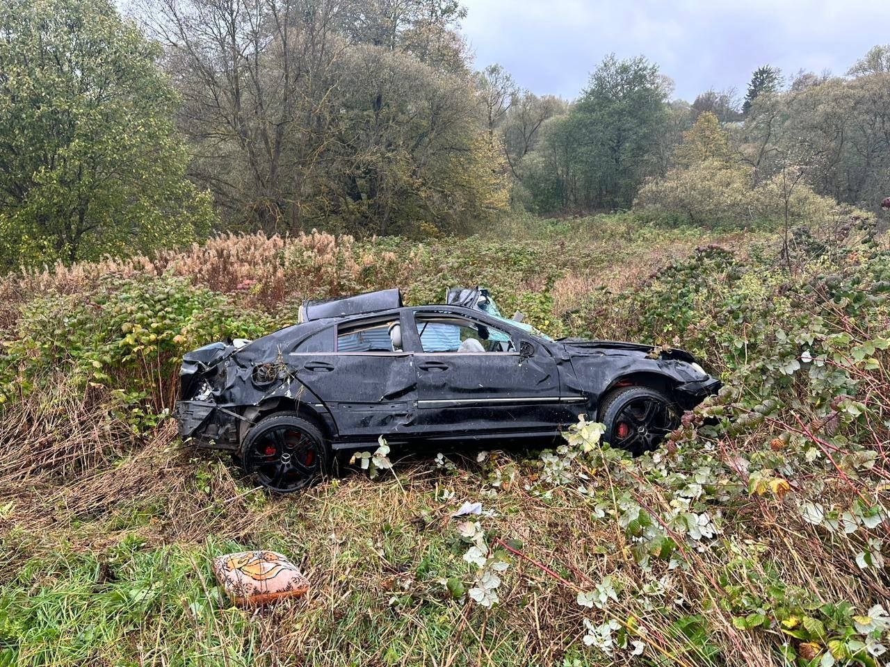 Днем в пятницу, 6 октября, на автодороге Калуга-Ферзиково-Таруса-Серпухов в районе деревни Черкасово произошло ДТП. Мужчина, водитель автомобиля Mercedes-Benz съехал с дороги и перевернулся.