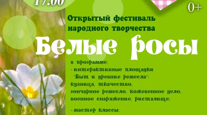 К 80-летию Калужской области в Обнинске готовится целый ряд культурных мероприятий. Центральным событием станет открытый фестиваль творчества «Белые росы», который откроется 6 июля в 17 часов на берегу Протвы в районе городского пляжа.