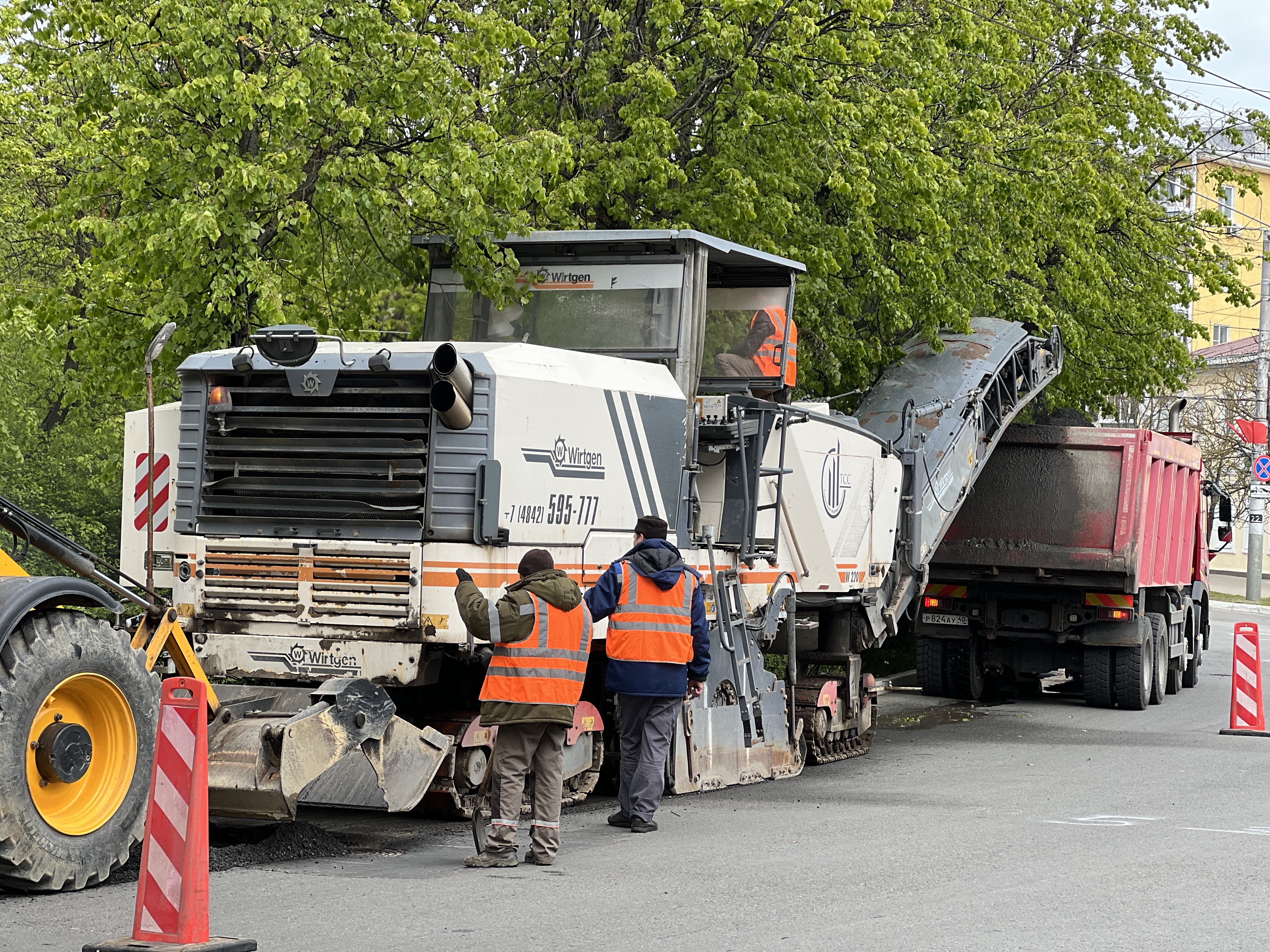 Там подрядчик приступил к дорожным работам, в рамках контракта там будет заменен слой покрытия автомобильной дороги, будет произведено фрезерование, уложен выравнивавший слой и верхний слой покрытия, будет заменен бортовой камень по периметру и переуложен тротуар.
