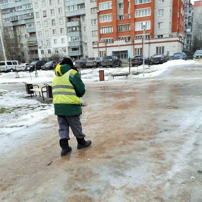 Рабочие убирают наледь с тротуаров, обрабатывают автодороги и скользкие места, вывозят снег, подметают пешеходные дорожки, убирают мусор как на улицах города, так и в местах отдыха и прогулок калужан – в парках и скверах.