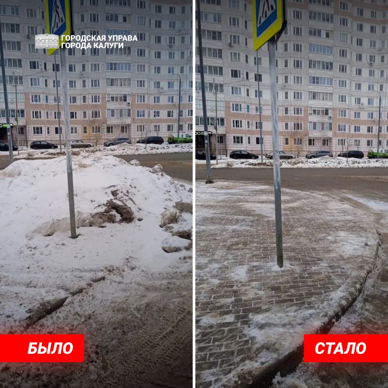 Проезжая часть обрабатывается заранее, перед выездом калужан на работу. В течение дня работа продолжается, включая вывоз снега и расширение автодорог и тротуаров.