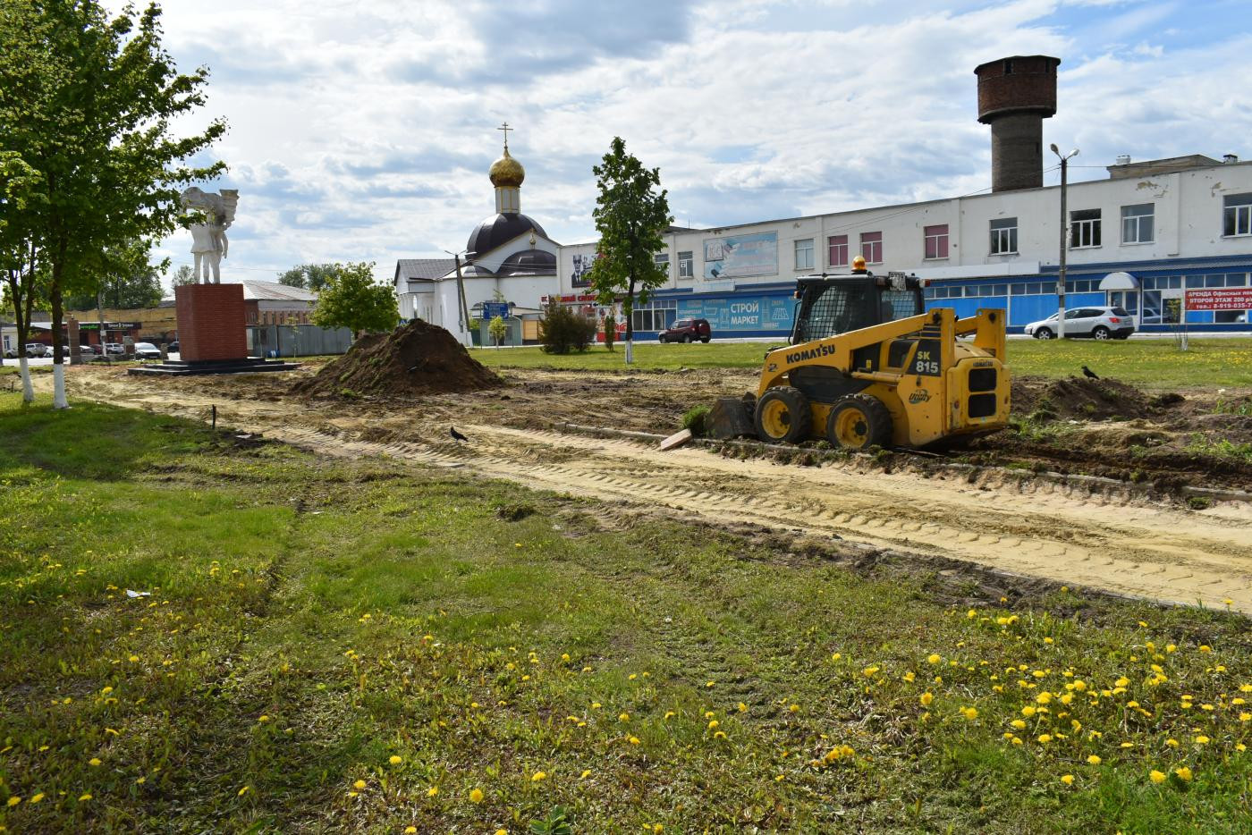 В первых числах мая подрядчик приступил к строительным работам. Многолетние кустарники из сквера Самусенко пересадили в сквер у ДК «Юбилейный». В настоящее время идёт демонтаж старых конструкций: убраны лавочки, фонари, урны, техникой снимают старое плиточное покрытие, удаляют верхний слой грунта. Тротуарная плитка не отправится в утиль – город использует её для укладки тротуара.