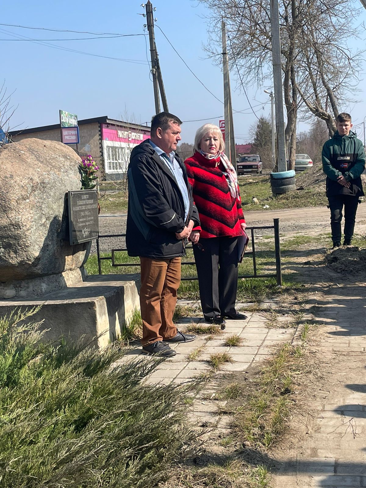Участники встречи также приняли участие в районном митинге и возложили цветы к плите памяти погибших в годы ВОВ.