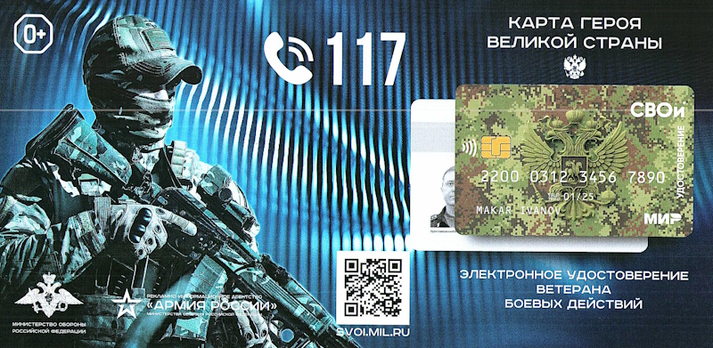 Министерством обороны Российской Федерации разработано электронное удостоверение ветерана боевых действий «СВОи»