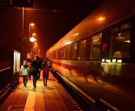 Бежит измученный состав,