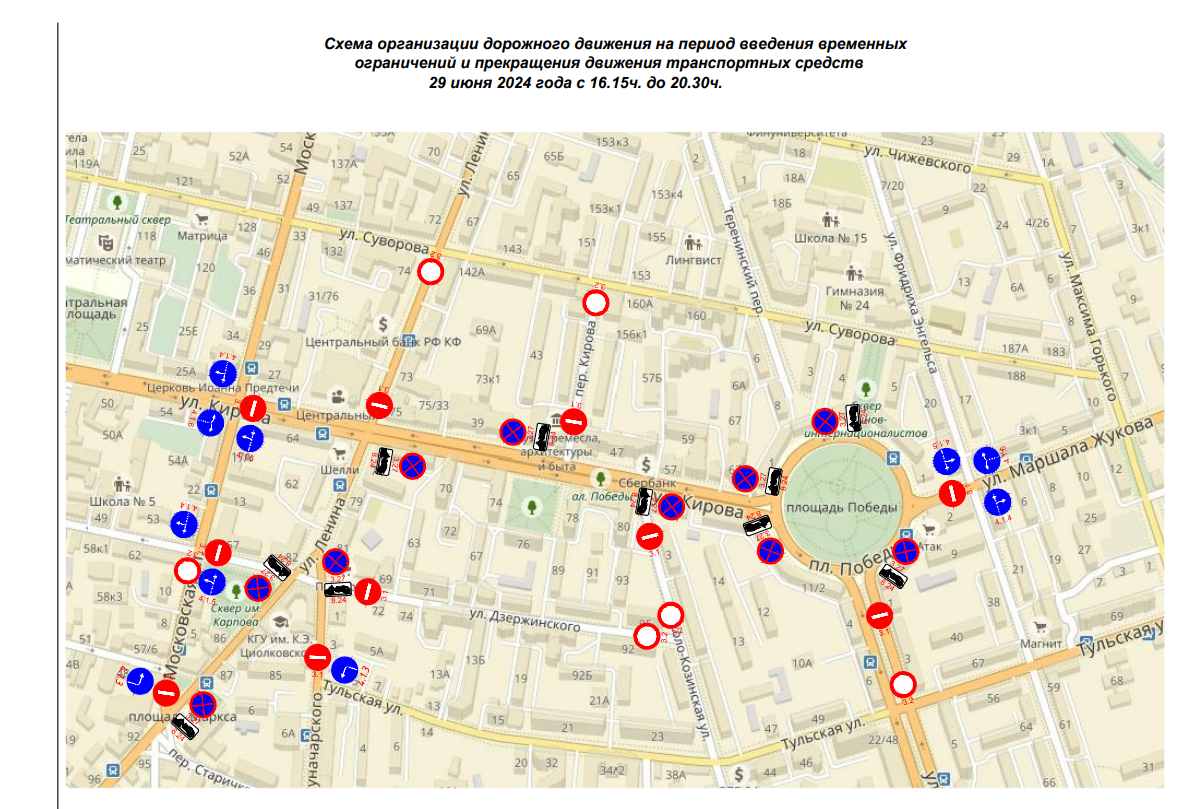 29 июня в Калуге будет ограничено движение для транспорта на следующих улицах: с 17.30 час.