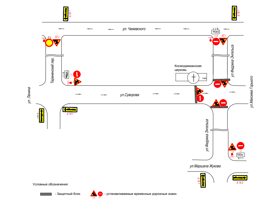 Ограничение движения на перекрестке ул. Суворова — ул. Фридриха Энгельса