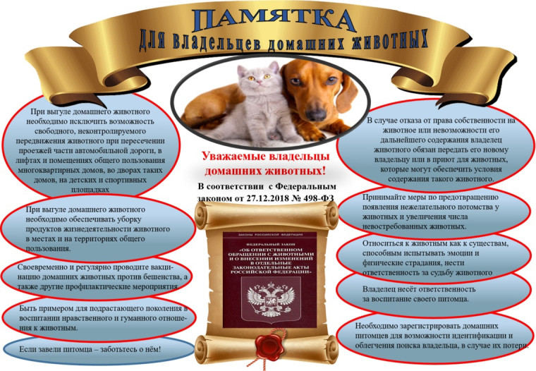 Памятка для населения по ответственному обращению с домашними животными