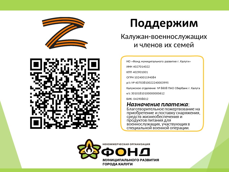 Узнать информацию о поддержке наших военнослужащих можно по ссылке: https://vk.com/fondkaluga?w=wall-208758166_34 .