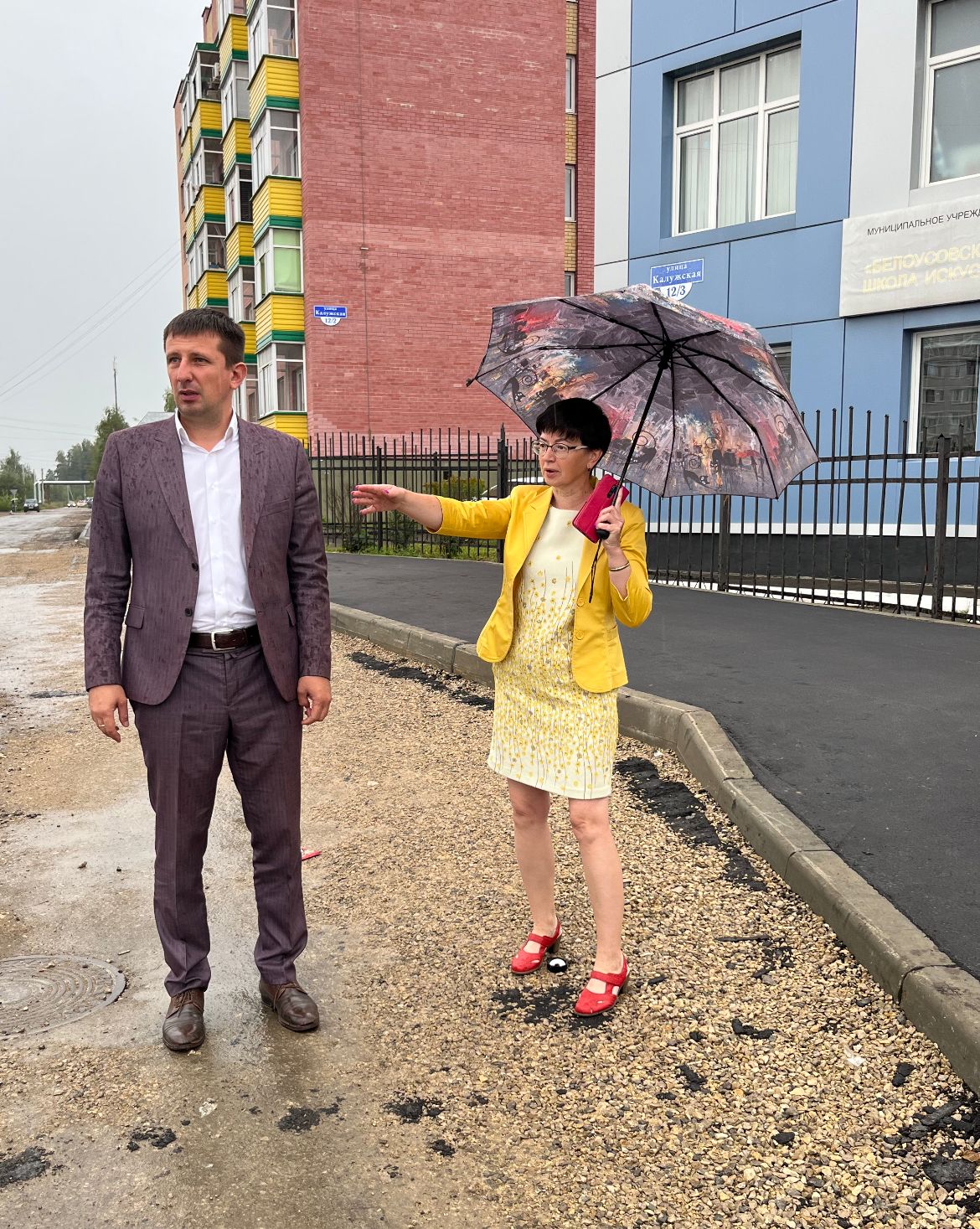 Глава администрации Зважий Тарас с директором школы искусств Смолиной Натальей вышли на участок возле остановки. Конечно это только начало завершения ремонта дороги, но очень ожидаемое.