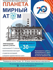 До 30 апреля можно подать заявки на фестиваль рисунков «Планета Мирный атом». Его проводит ФЭИ для школьников и студентов колледжей.