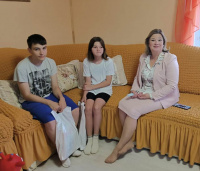 В рамках партийной акции «Собери ребёнка в школу» она передала набор с необходимыми канцтоварами и школьными принадлежностями семье Скрябиных.